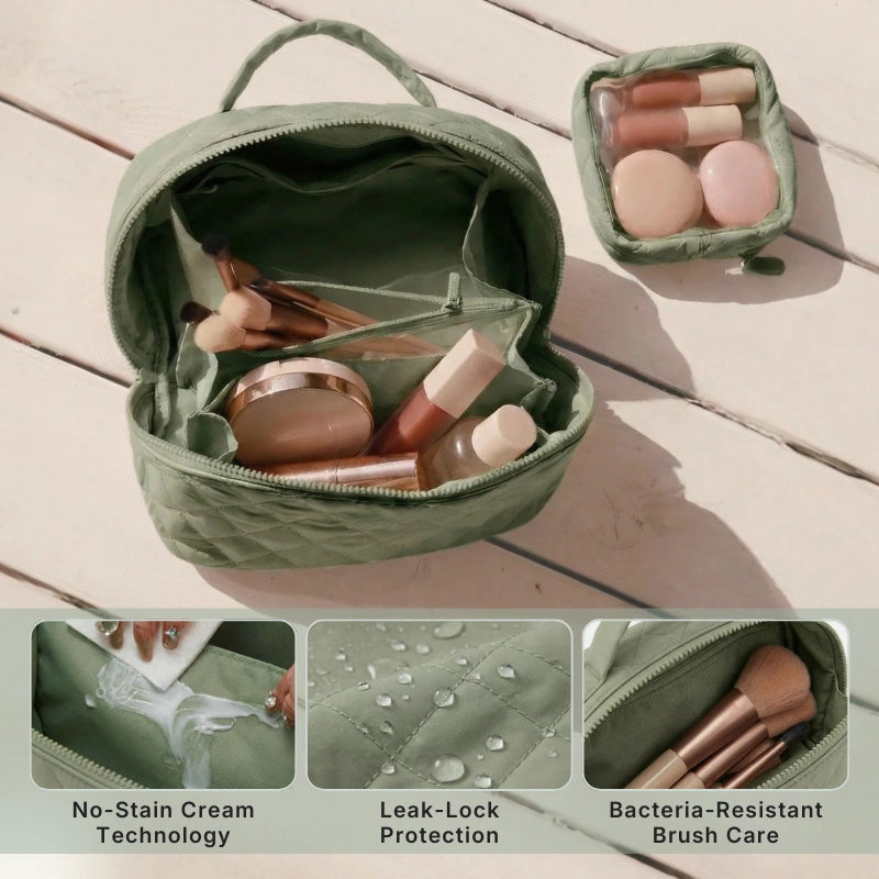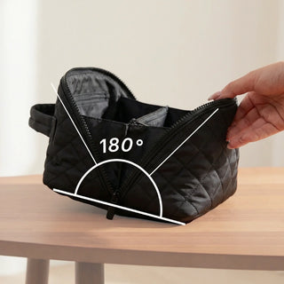 Quilted finish, smooth double zipper, and a water-resistant lining that wipes clean in seconds. This isn't just a bag — it's an upgrade.