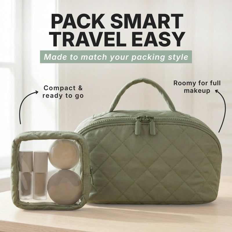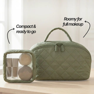 Compact enough for your handbag, roomy enough for your entire routine. Take it anywhere — it fits right in.